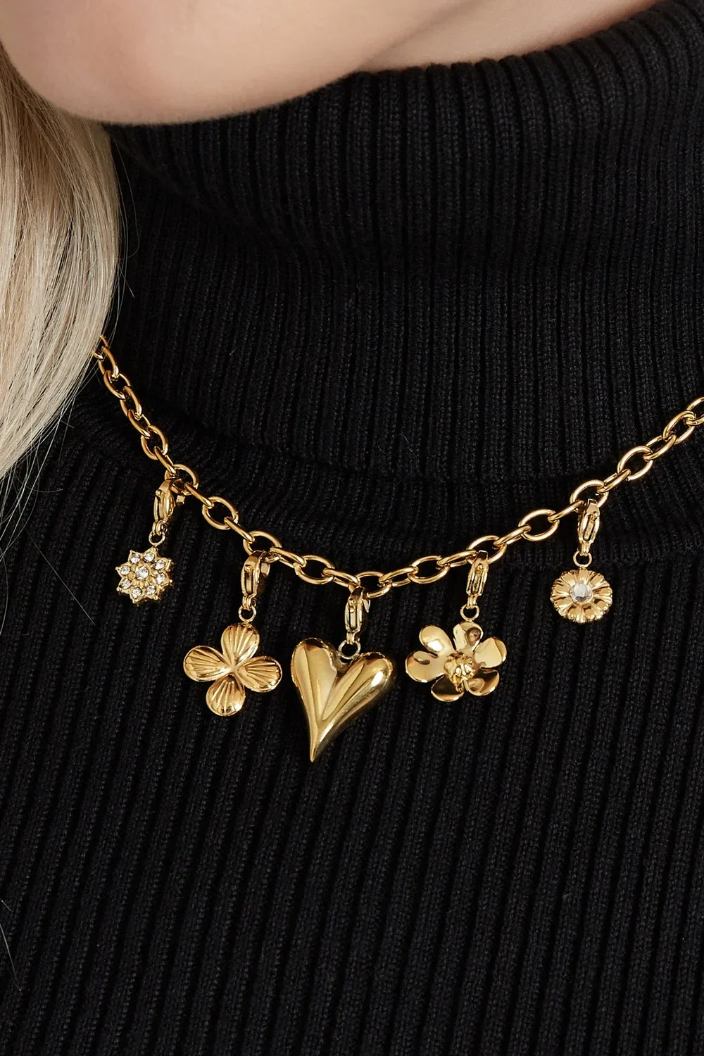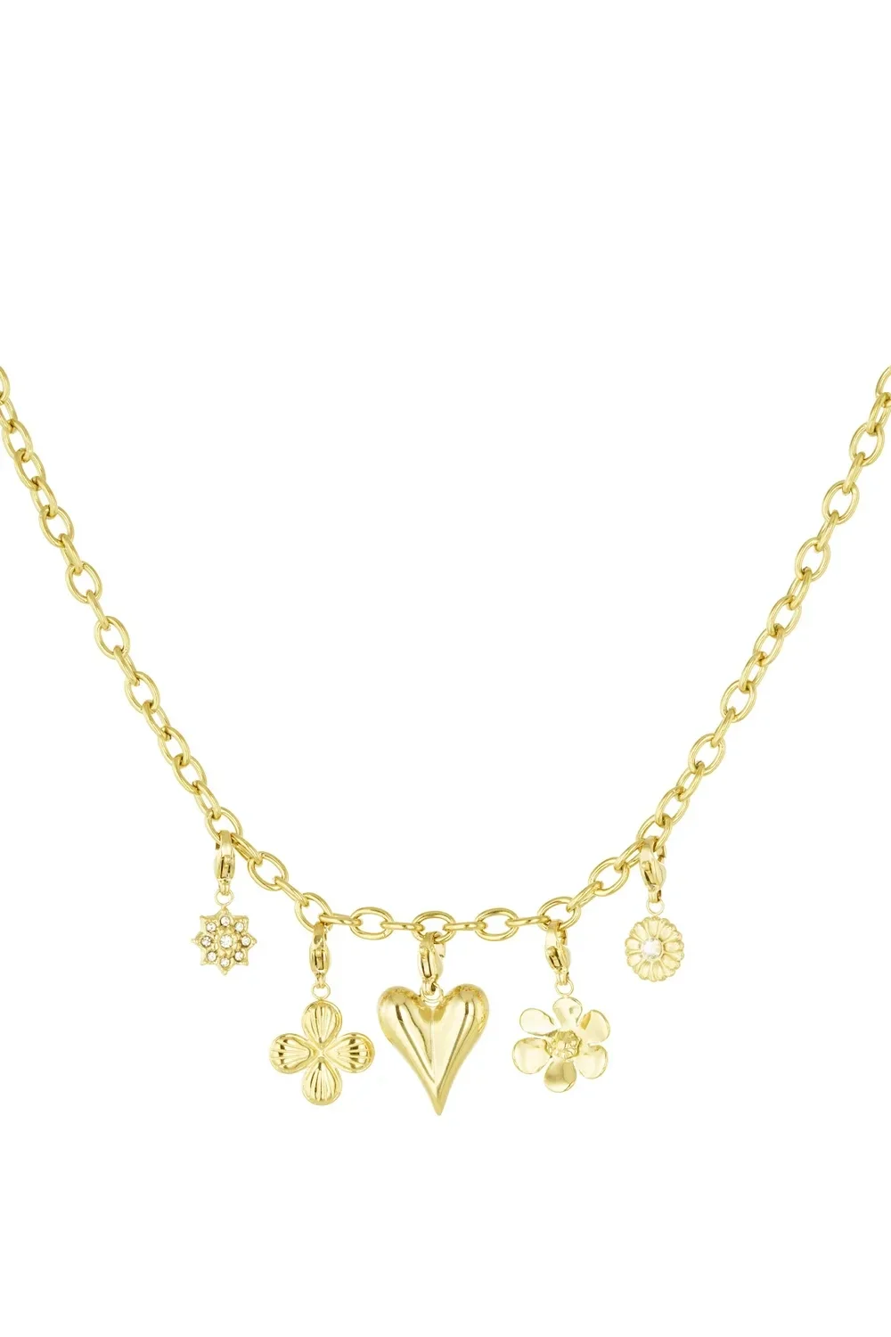 Deze ketting is met meerdere charms, van stainless steel en nickelvrij materiaal.